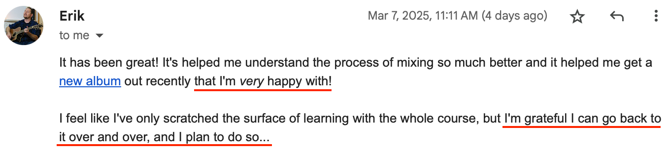 I've had students who spent years tweaking the same mixes tell me they finally have a mix they're genuinely proud of after going through this course.
