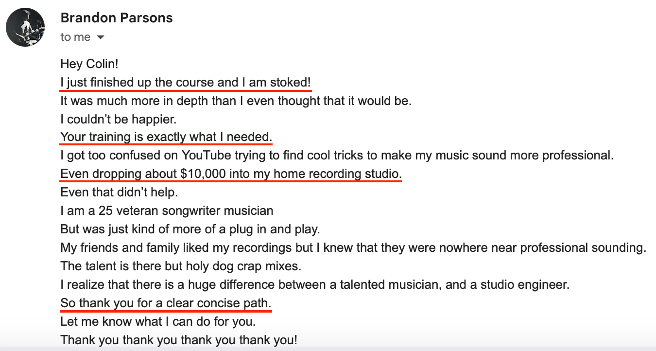 2) This course will teach you everything you need to know. But YOU have to apply it. I'm genuinely excited to do my part and teach you everything I possibly can. Are you stoked to put in the work and finally create great sounding music?